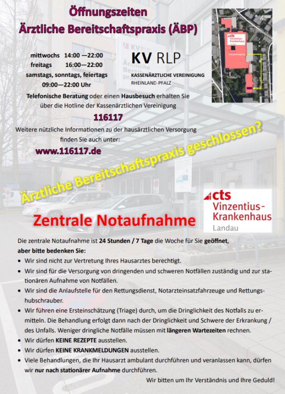 In diesem Rahmen können und dürfen wir, im Gegensatz zum kassenärztlichen Bereitschaftsdienst, für ambulante Notfälle keine Rezepte oder Arbeitsunfähigkeitsbescheinigungen ausstellen. Dies bleibt der kassenärztlichen Versorgung vorbehalten. Erreichbar ist diese über die Hotline der kassenärztlichen Vereinigung 116117 oder die reguläre hausärztliche Versorgung.
