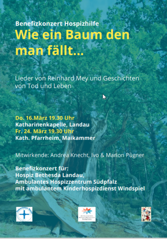 Der Eintritt ist frei. Um eine Spende für das Statiönäre Hospiz und das Ambulante HospizZentrum mit Ambulanten Kinderhospizdienst Windspiel wird gebeten.