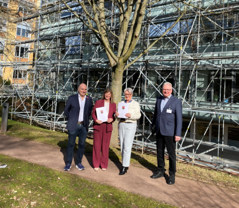 Bei ihrem heutigen Besuch im Vinzentius-Krankenhaus in Landau überreichte Nicole Steingaß, Staatssekretärin im Ministerium für Wissenschaft und Gesundheit Fördergelder in Höhe von insgesamt 5.240.000 Euro an Ilona Fleischer-Klisch, Geschäftsführerin Vinzentius-Krankenhaus in Landau. Mit Landesmitteln in Höhe von 4.511.000 Euro im Rahmen des Krankenhausinvestitionsprogramms 2024 wird die Erneuerung der Stromversorgung gefördert. Darüber hinaus erhält die Klinik, ebenfalls aus dem Investitionsprogramm 2024 einen Festbetrag in Höhe von 729.000 Euro für die Erneuerung der zentralen Anlagen im Bereich Heizung, Lüftung und Sanitär (HLS) zur Sicherung des Gesamtkrankenhausbetriebs.